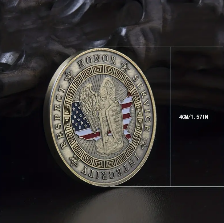 - St. Michael Patron Saint Design: The front of the coin showcases a detailed depiction of St. Michael, the archangel known for his role as the protector of law enforcement officers. This sacred image serves as a constant reminder of divine protection and guidance.